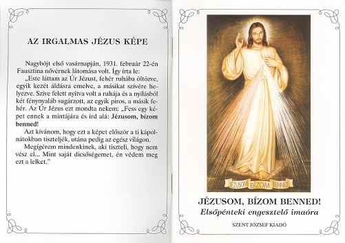 Ez a 26 oldalas ki imafüzet segítséget kíván nyújtani templomi közösségek vagy egyének számára elsőpénteki imaóra megtartásához. Isten irgalmas szeretetének segítsége által sok veszély, sok baj elhárítható.